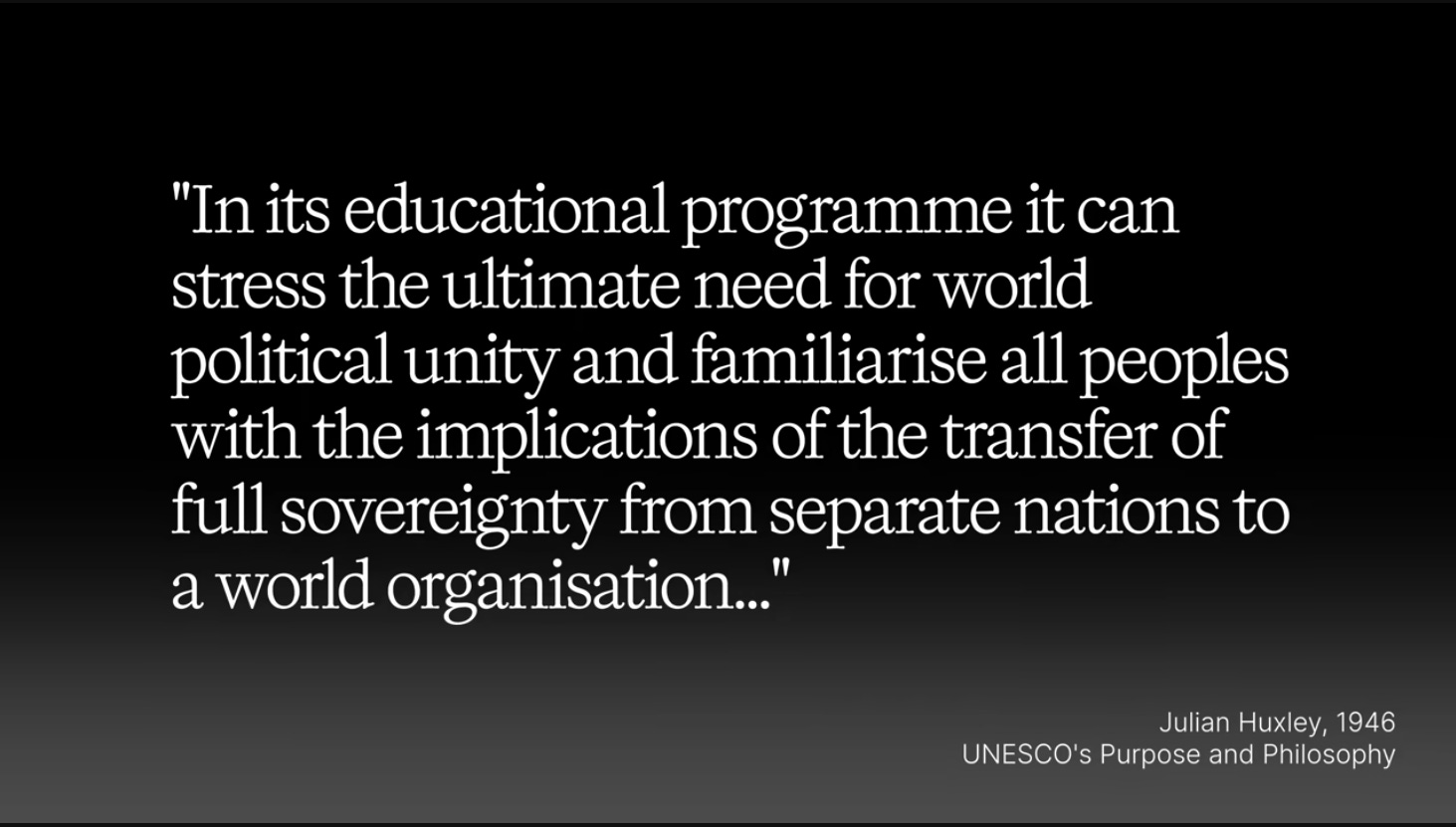 And if you go back to the early days of the UN, you’ll find people like Julian Huxley, the grandson of Thomas Huxley, letting it all hang out as to the British plans for the UN, which were contrary to Franklin Roosevelt’s intentions.