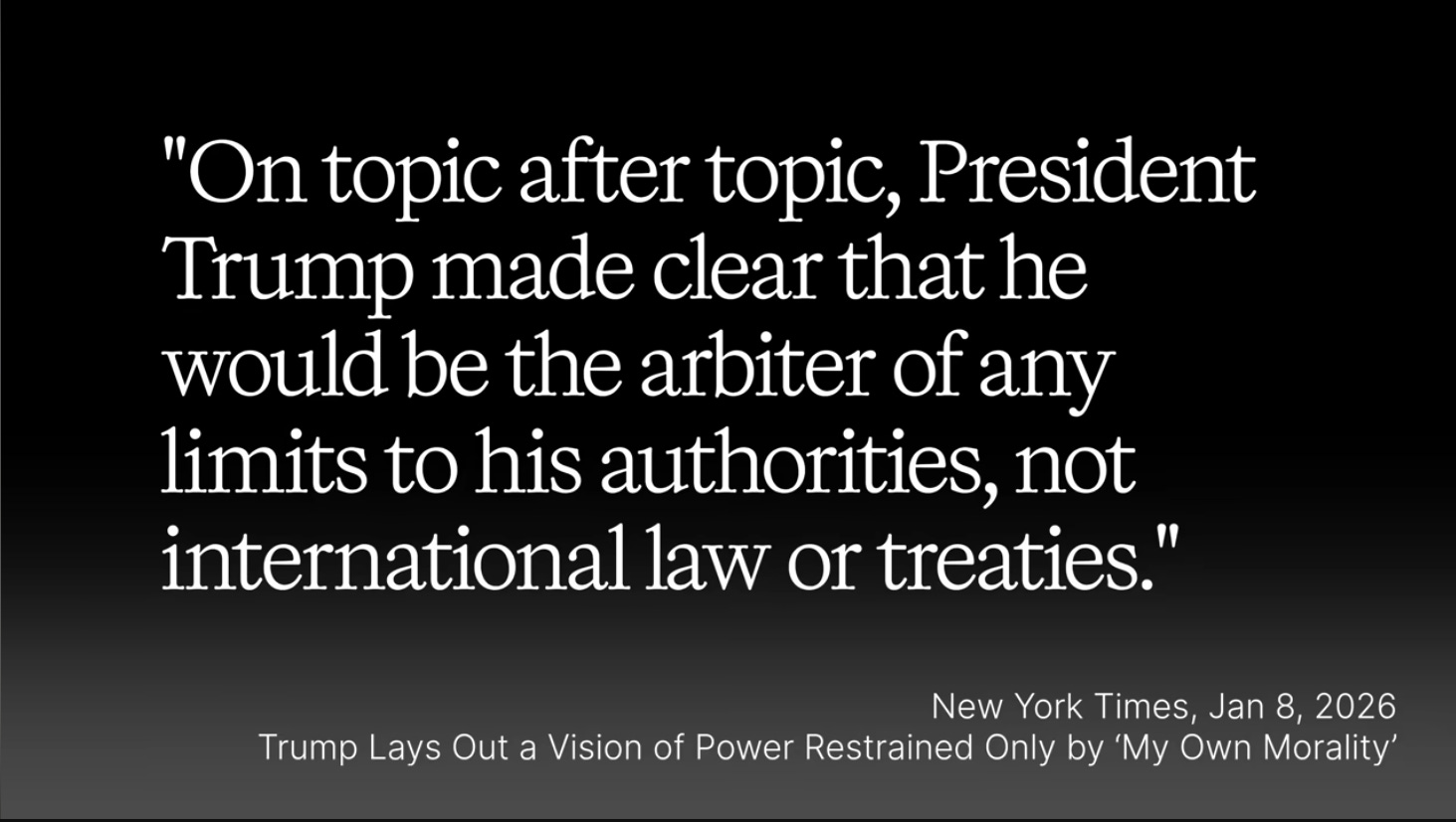 So sure, the New York Times is screaming that Trump has set himself above international law.