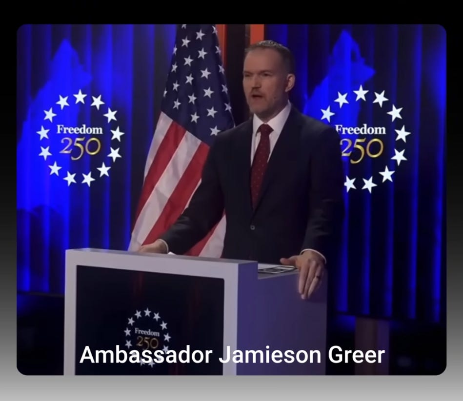 And this follows Ambassador Jameson Greer’s shockwave speech at Davos last week, in which he dusted off Alexander Hamilton to tell the elites: your system is over…