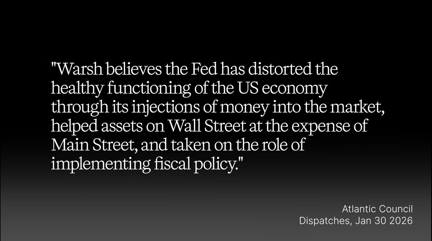 Now think again about the appointment of Kevin Warsh and his alignment with Scott Bessent on tilting the balance away from the Fed to the Treasury for the benefit of Main Street.