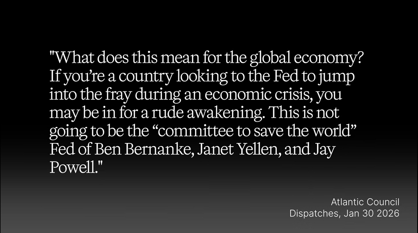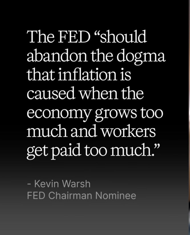 So when the Democrats or even some of the lunkheaded Republicans try to turn the Warsh nomination into an academic debate of interest rates, remember that history and realize that something very, very big is happening.