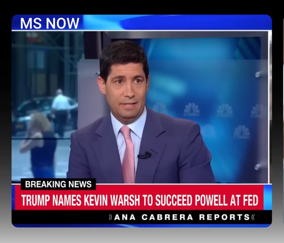 And CNBC, which ran the headline, Kevin Warsh touts regime change at the Fed…