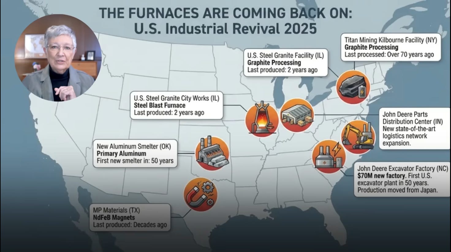 Here’s a map which shows just a few of the other factory restarts where we are gearing up a productive capacity here at home that we haven’t had in decades…