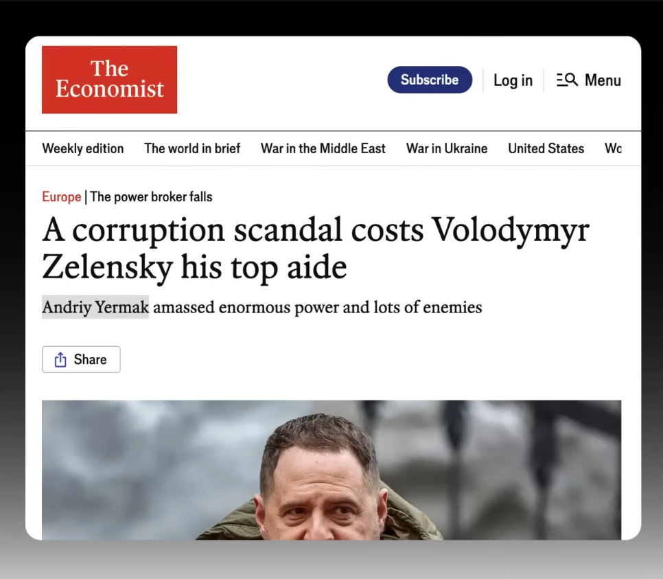 Andriy Yermak was the power behind Zelensky, kind of like Obama being the power behind Biden, only worse - until now, it seems he got greedy