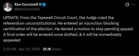 UPDATE on the VA Special Election - Blocked from CertificationDecisive LibertyApr 22, 202672ShareEarlier details can be found here…PreviousNext
