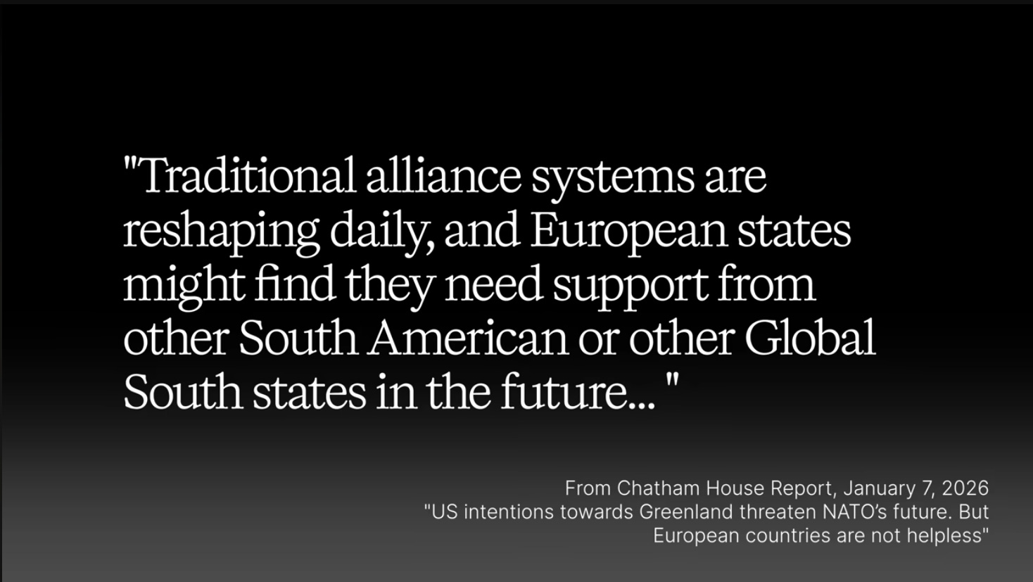 And NATO, the military arm of that old imperial system, knows that if Greenland goes, the whole structure starts to crumble.