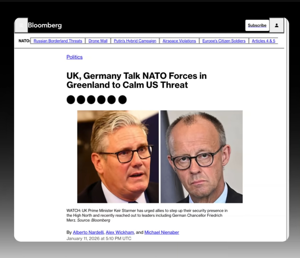 And Bloomberg reported that the United Kingdom and Germany are now discussing deploying NATO forces to Greenland to protect it from the United States.