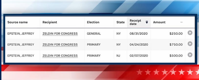 Zeldin‘s donations are dated 202, Epstein died in 2019 - the donations are from a DR. Jeffery Epstein, not THE Jeffery Epstein.